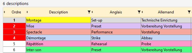 Info : Les descriptions ayant la case de leur numéro d'ordre en rouge sont des descriptions spécifiques à RS : elles ne peuvent pas être modifiées ou supprimées.
