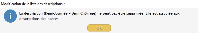 Les utilisateurs créent autant de descriptions qu'ils souhaitent. Une liste est déjà proposée lors de l'achat du logiciel. En revanche des descriptions sont clefs et ne peuvent pas être supprimées (voir le chapitre "Descriptions et Mots clefs") quand d'autres sont destinées uniquement aux plannings des cadres au forfait jour (voir plus loin dans l'article).