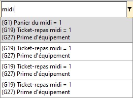 Filtrer un gain ou une majoration