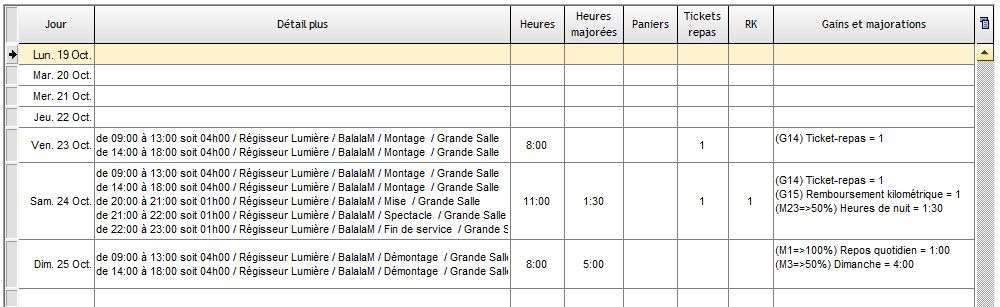 Sur une période donnée (voire l'année), il est possible de retrouver rapidement les jours où tel gain quotidien ou telle majoration quotidienne a été appliquée.