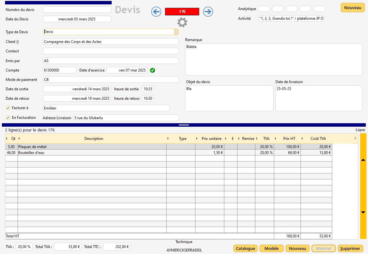 Info : La liste des devis et factures édités est consultable grâce à l’outil "Vue Devis Facture"