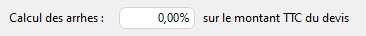 Info : Il est possible de renseigner un pourcentage par défaut pour toutes vos factures d'arrhes, voir le chapitre "Clients - Paramétrage devis-facture".