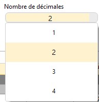 Une option permet de choisir le nombre de décimales pour les quantités et les monétaires. Par défaut il est de 4 (ex. 36,1234).