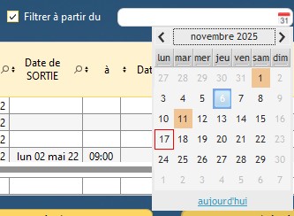 Il est possible de filtrer les devis affichés à partir d'une date dans la liste des devis. Cela évite d'afficher la totalité des devis. Pour cela cochez la coche "Filtrer à partir du", puis sélectionnez la date dans le mini calendrier.