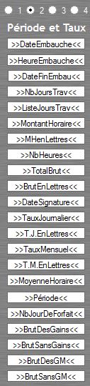 - Bouton 2 : les champs liés à la période et aux taux (période, taux horaire, ...)