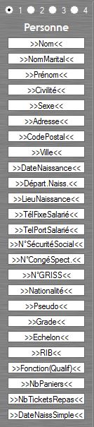 - Bouton 1 : les champs liés à la personne (nom, prénom, date de naissance, ...)