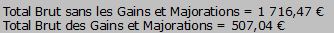 - Le Total brut sans les Gains ET des Majorations.