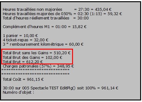 Exemple de Cartouche comptable ("Total Brut sans les Gains" coché) :
