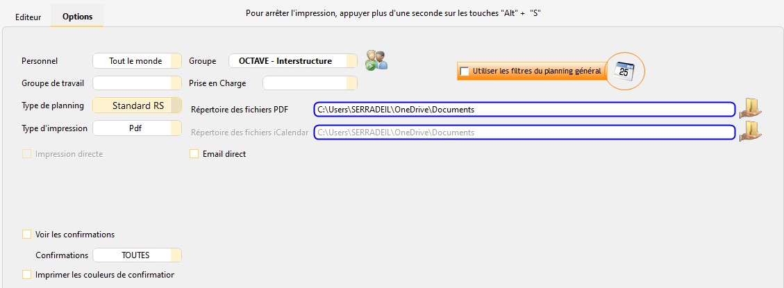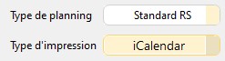 Le champ "Type d'impression" permet de faire une impression papier, de créer un fichier PDF ou iCalendar (Type de planning Standard uniquement).