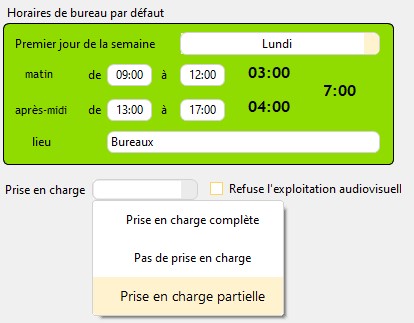 Le champ "Prise en charge" filtre le personnel selon cette configuration.