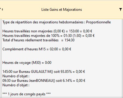 La liste RH affiche le contenu du cartouche comptable des personnels sur la période dans la colonne "Liste Gains et Majorations".