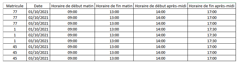 Un fichier de pointage est à votre disposition pour connaître le personnel planifié sur une période donnée et leurs horaires respectifs.