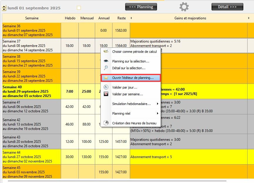 La majorité des gains et les majorations s'appliquent automatiquement dans le Planning Annuel selon le planning et la configuration du personnel. Toutefois certains gains et majorations s'appliquent manuellement sur le planning réel.