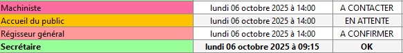 La confirmation des équipes intermittentes avec RS se gère grâce à un code couleur et propose 4 états de confirmation :