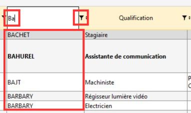 3/ Cherchez la colonne "Qualifications", cliquez sur l'entonnoir pour effectuer un filtre et écrire "régisseur".