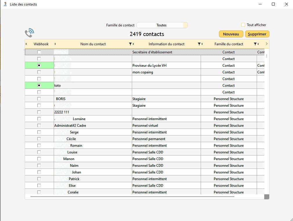Il est possible de créer des contacts qui ne font pas partie de ces 4 familles depuis la fenêtre Contacts.