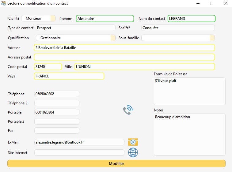 Modifier un contact