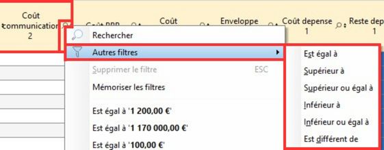 1/ faites un clic droit sur la loupe du titre de colonne.