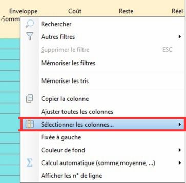 2/ dans "sélectionner les colonnes", cochez ou décochez les colonnes souhaitées