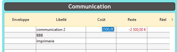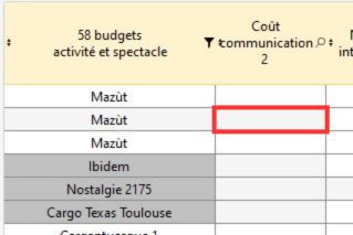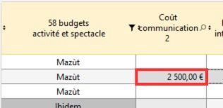 Saisir ou modifier une valeur dans le budget d'un évènement/activité