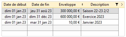 2/ la table à côté de l'option indique les dates et les montants des enveloppes