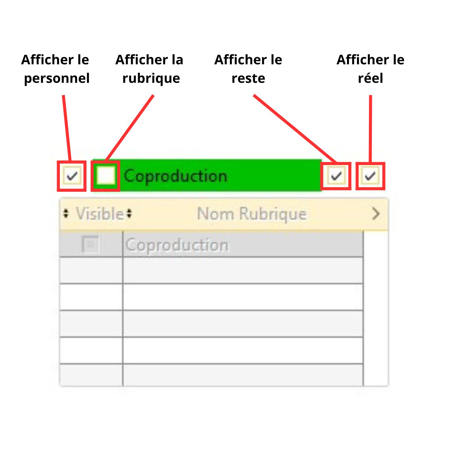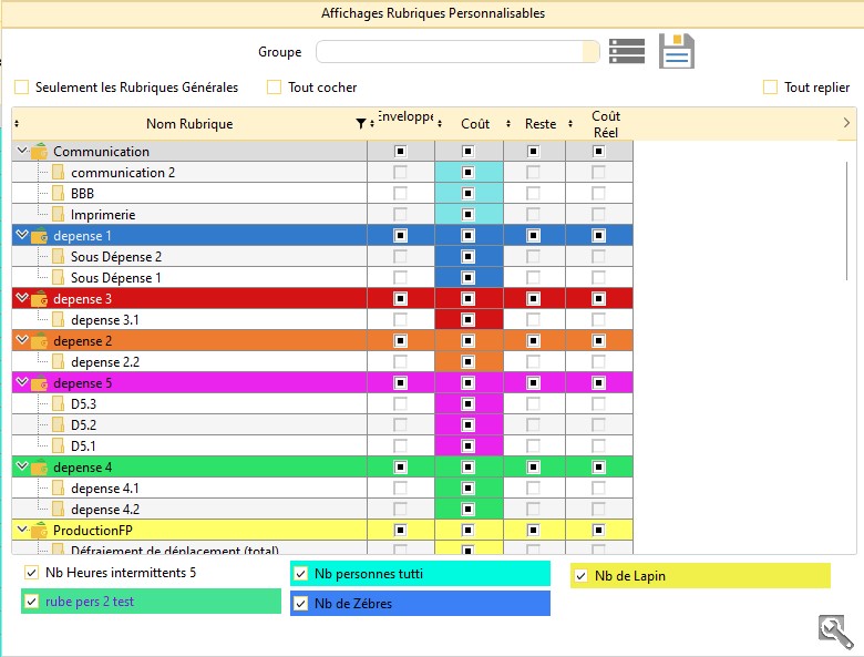 Le volet "Affichages Rubriques Personnalisables" - Version 2 (version récente) du budget
