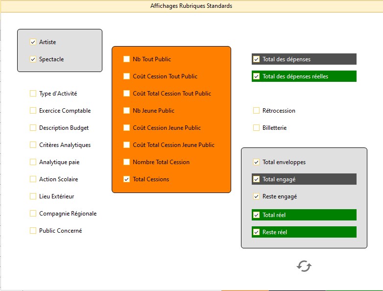 Info : Un cinquième critère analytique a été ajouté sur les budgets des spectacles pour développer leur arborescence comptable.