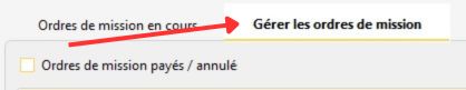 Les onglets "Ordres de mission en cours" et "Gérer les ordres de mission"