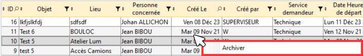 Pour archiver des Ordres de mission, sélectionnez leurs lignes et par clic droit choisissez