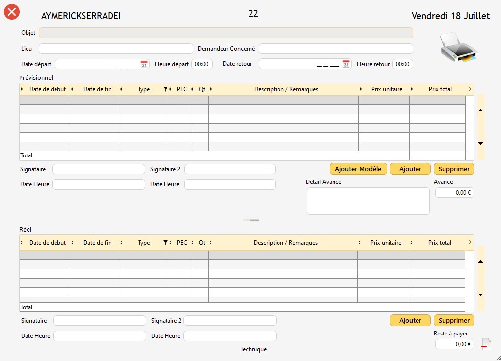 n'apparaît que lorsque le prévisionnel a été validé par au moins une signature. Il permet de copier-coller le prévisionnel en réel (qui pourra, bien évidemment, être modifié).