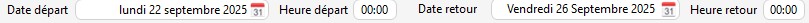 1/ Renseignez la date de départ et la date de retour dans les champs dédiés.
