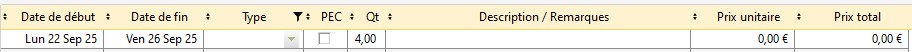Si la coche de la ligne est activée, dans un Ordre de mission, la ligne apparaîtra grisée et il n'y aura aucun montant.