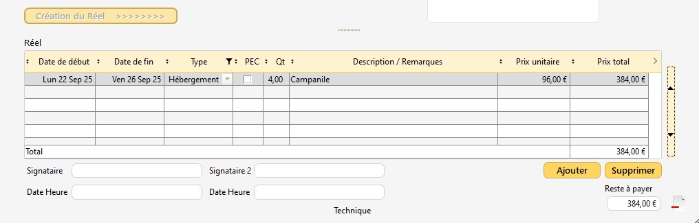 La table du réel se gère de la même façon que celle du prévisionnel, on peut modifier, ajouter ou supprimer une ligne.
