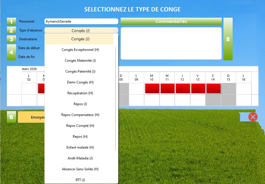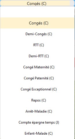 Dans le menu déroulant, les différents types d'absence sont proposées.