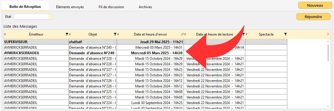 Chaque demande et chaque réponse généreront un message automatique au destinataire. (Voir le chapitre "Messagerie interne").