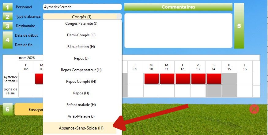 Dans les demandes d'absence, une nouvelle absence vient compléter la liste : l'absence sans solde.