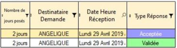 Si la demande est acceptée, la demande d'absence ou de congé est intégré au planning de la personne.