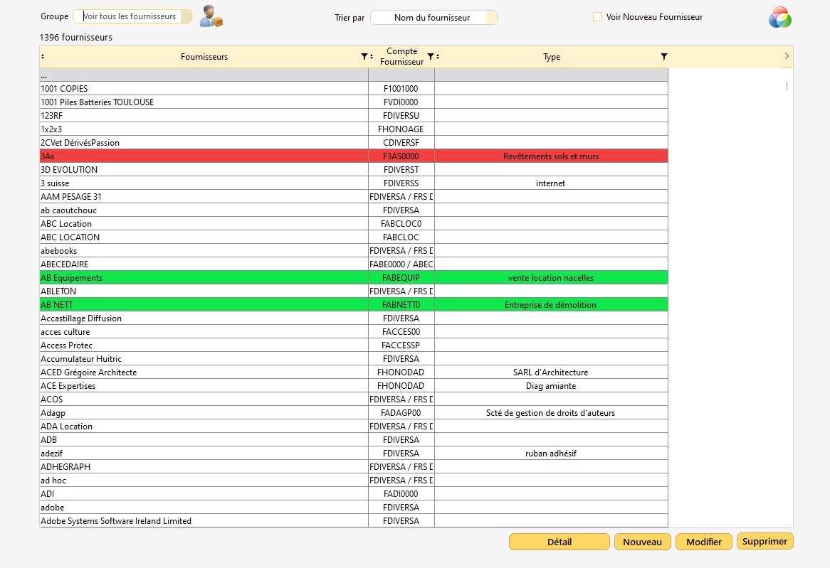 En plus du tri "Voir Nouveau Fournisseur", vous pouvez appliquer un code couleur à vos fournisseurs en cliquant sur l'icône