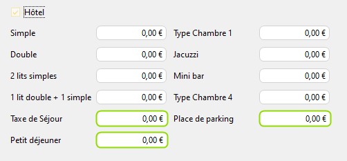 Dans la réservation d'hôtel, il est possible de personnaliser le prix des places de parking, dans l'édition des bons de commande et visualiser le récapitulatif avec le total HT du prix du parking.