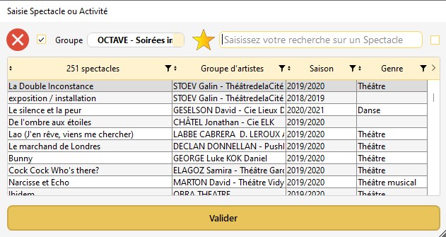 - dans le champ "Spectacle" : un artiste ou sur un spectacle,