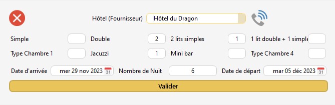 2 - Créer les bons de commande : permet de créer un bon de commande en lien avec les chambres d'hôtel réservées.