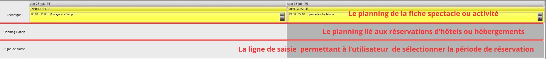 3 - Créer le planning des nuits d'hôtel : permet de créer rapidement des lignes de planning avec la description "Hôtel", en lien avec la réservation effectuée par l'utilisateur.