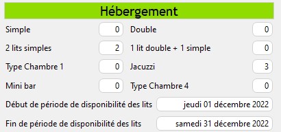 Info : Ces données sont utilisées dans le module de gestion de l'hébergement. Les champs se personnalisent (voir le chapitre «Modifier les libellés»).