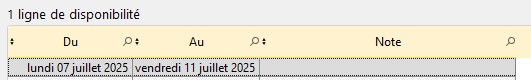 Pour ce faire, cliquez sur "Nouveau", et sélectionnez les dates de début de disponibilité, et de fin de disponibilité.