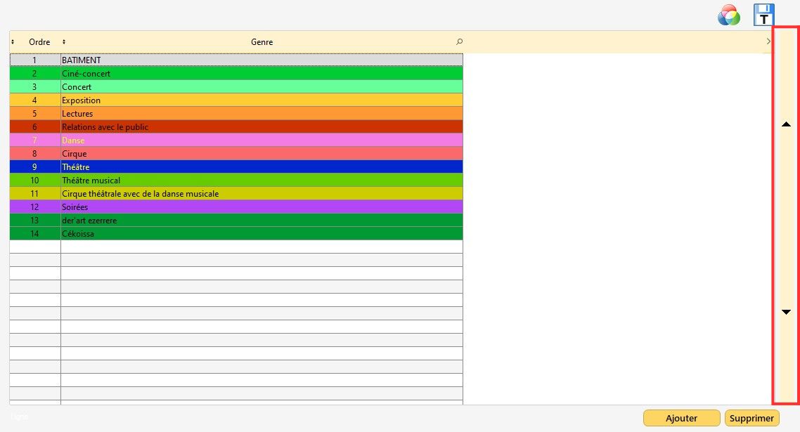 1/ Cliquez sur les flèches jaunes verticales pour changer l'ordre d'apparition des éléments.