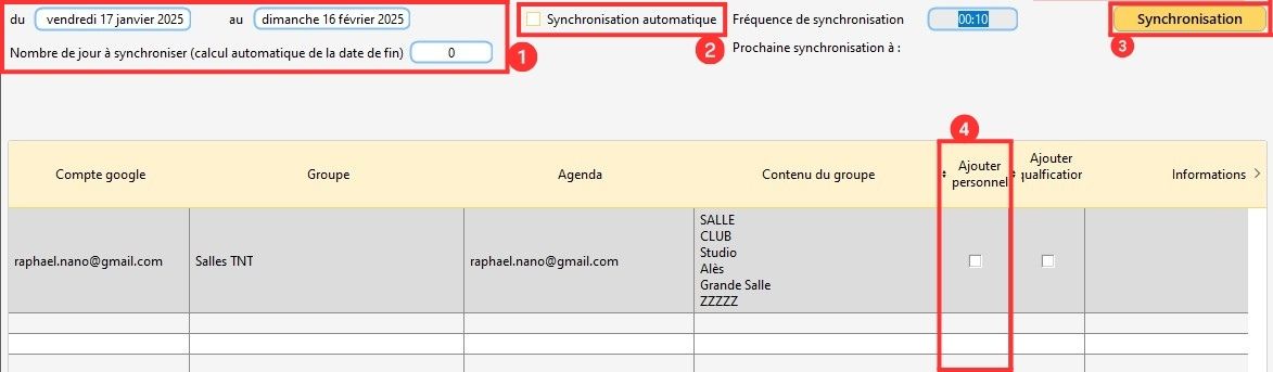 - 4 - Exporter l’agenda sur Google en cliquant sur « Synchronisation manuelle »