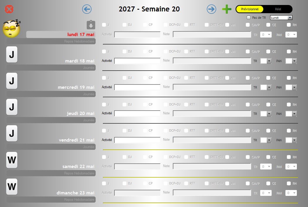 avant d'ajouter une semaine prévisionnelle ou réelle (avec le