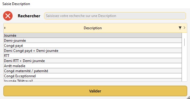 La description "Journée Compte Épargne Temps" est une description cadre de RS qui ne peut être modifiée, ni supprimée.