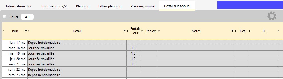 Afficher le Détail des jours