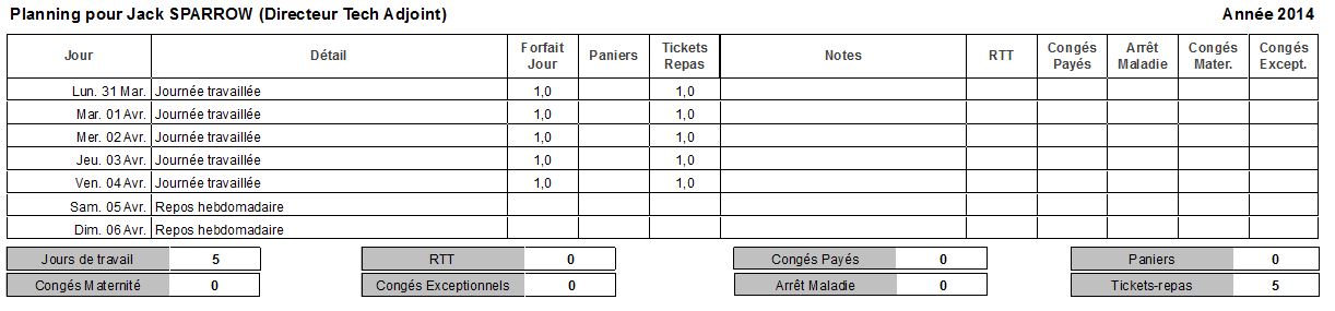 Le samedi et le dimanche possèdent les mêmes outils que les jours ouvrés (J, CP, DJ+RTT, CE, ...).